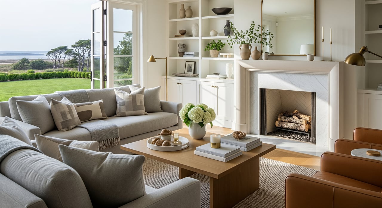 - De-personalize while keeping warmth, using a few curated books or coastal ceramics.